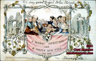 Ezzel az üdvözlő lappal kívánt Sir Henry Cole kellemes ünnepeket barátainak 50. születésnapja alkalmából, 1887-ben.